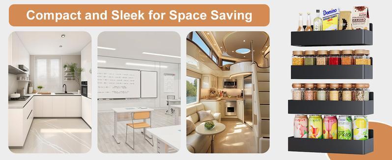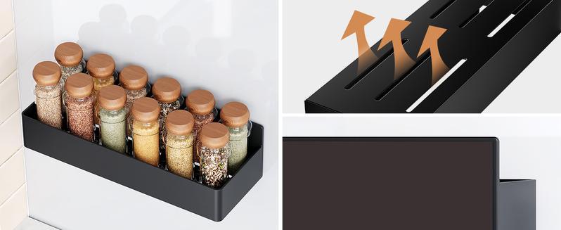 • Durable and Sturdy: Addressing concerns about product longevity, Magnetic shelves is crafted from high-quality metal materials that undergo a special treatment process for enhanced durability. Tested to maintain its pristine condition for over a decade, this spice shelf is a long-term investment that guarantees quality. It ensures your purchase remains valuable, eliminating the need for frequent replacements, and offering you peace of mind and reduced effort.